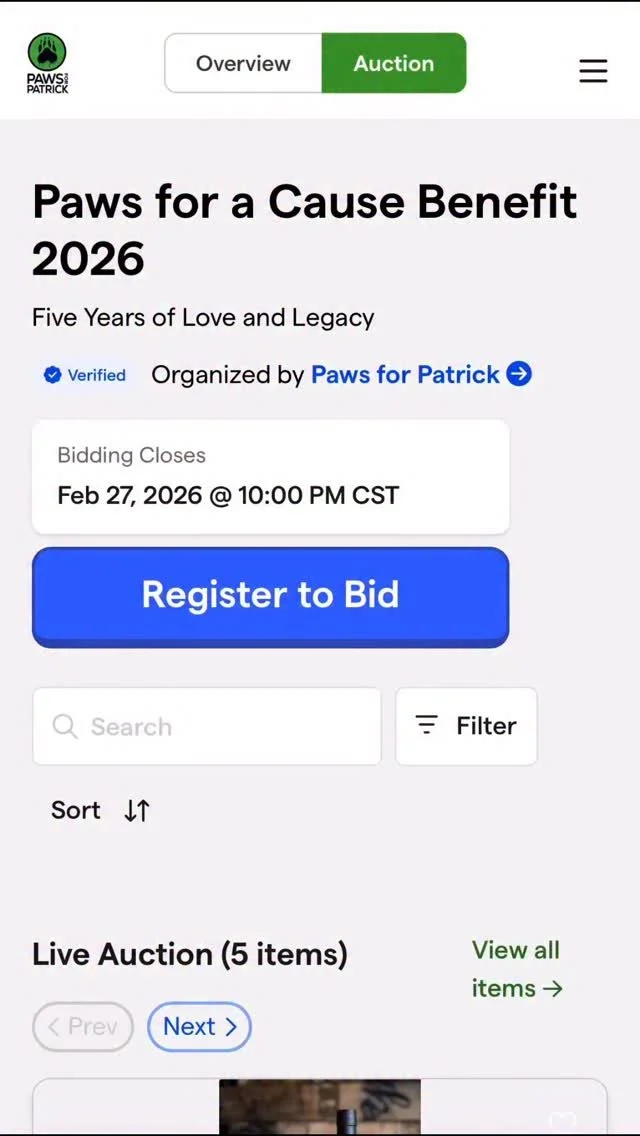 Follow us on social @pawsforpatrick